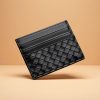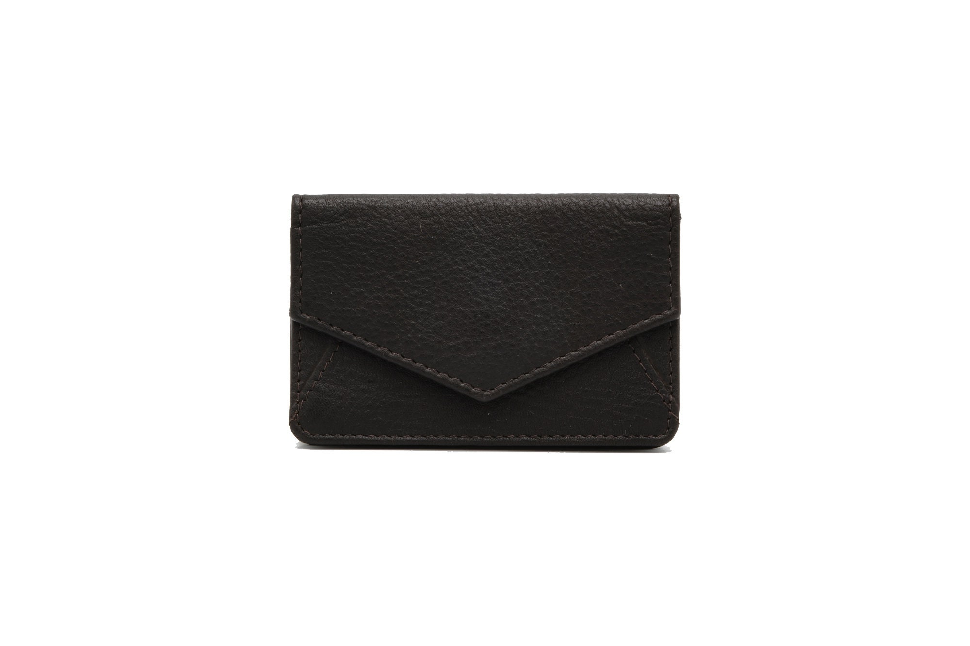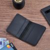 > Features an exterior card slot and button clasp, capable of holding up to 50 business cards.
